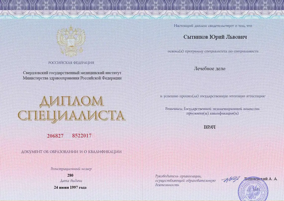 Я хотел бы поблагодарить доктора Юрия Сытникова за его профессионализм и доброе отношение. Он помог мне вернуться к здоровой жизни.